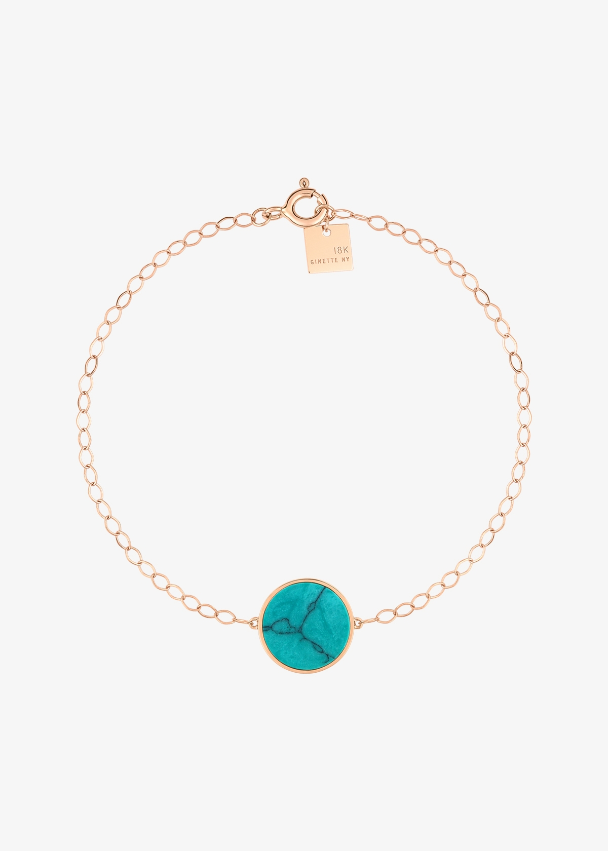bracelet or rose 18 carats et turquoise, 17 cm taille du motif 11 mm