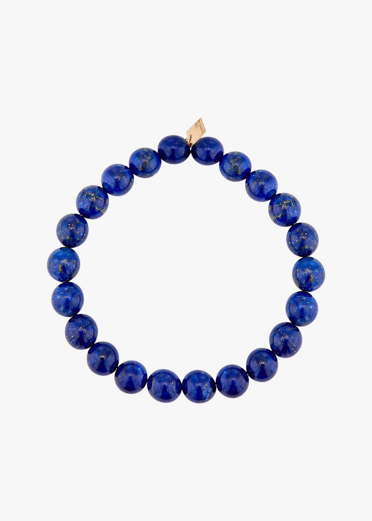 bracelet or rose 18 carats et lapis boulier sur élastique sans fermoir circonférence intérieure : 17 cm, diamètre perle : 8 mm