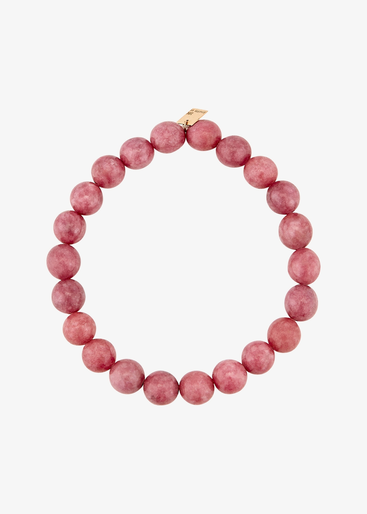 bracelet or rose 18 carats et rhodonite boulier sur élastique sans fermoir circonférence intérieure : 17 cm, diamètre perle : 8 mm