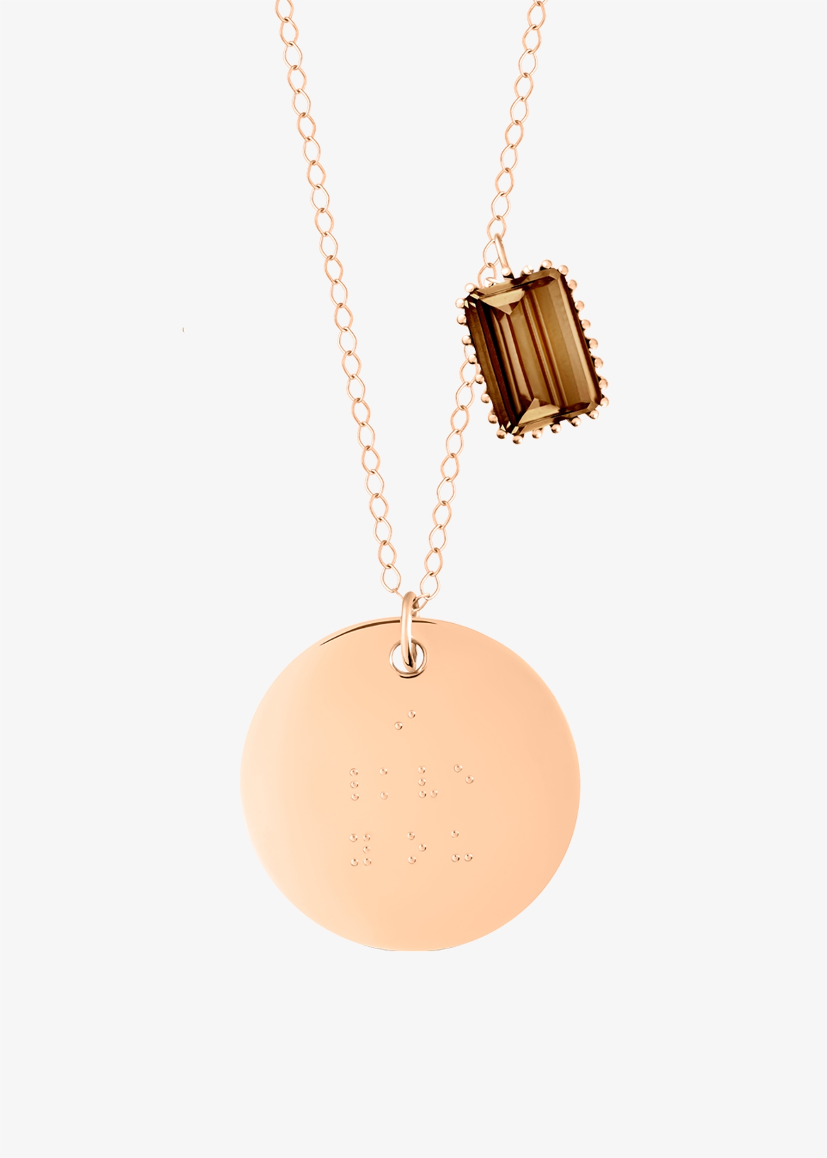 collier or rose 18 carats et quartz fumé (6,95 ct), 50 cm
