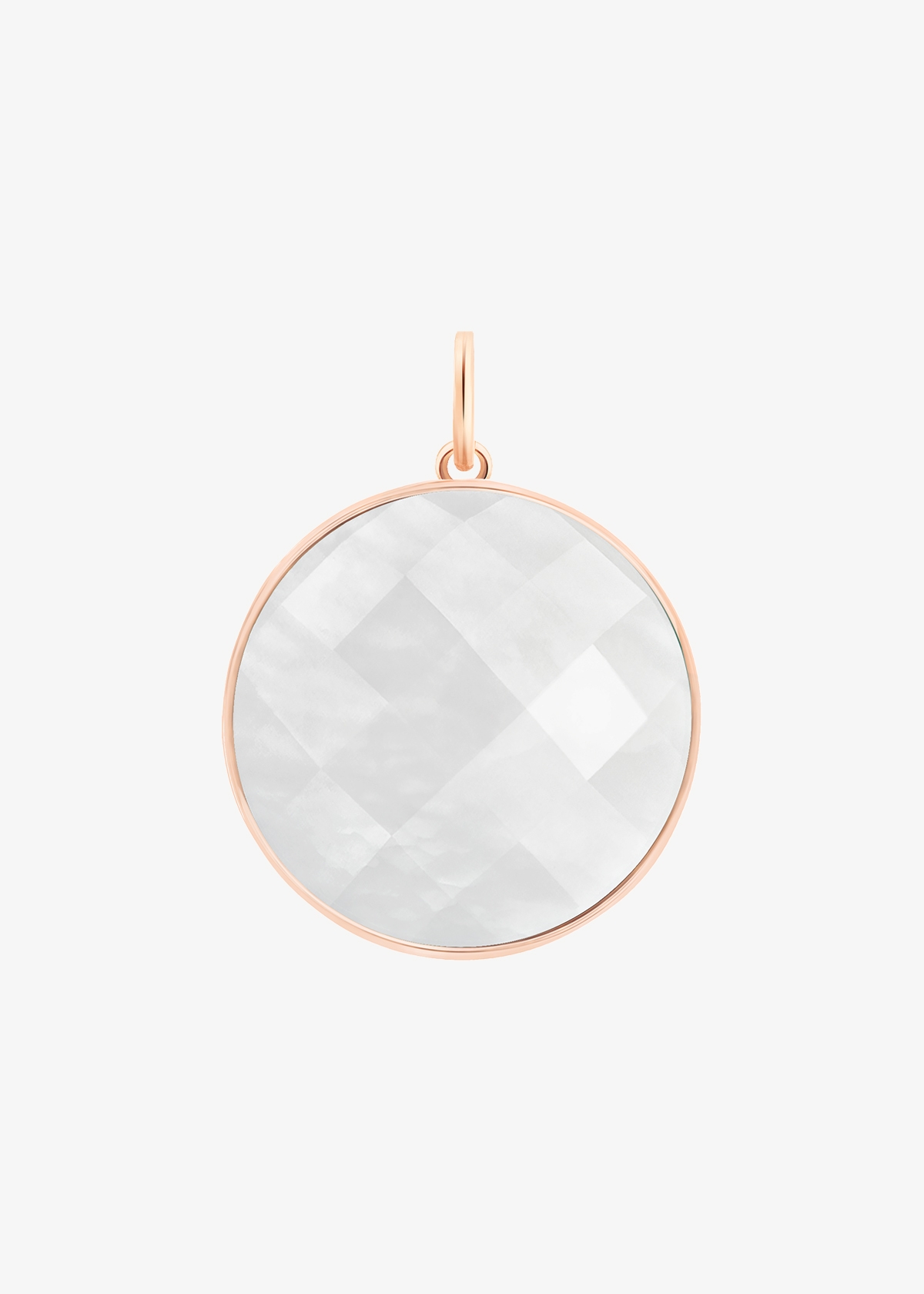 charm jumbo pixie ever or rose 18 carats et pierre de lune blanche facettée taille du motif : 18 mm