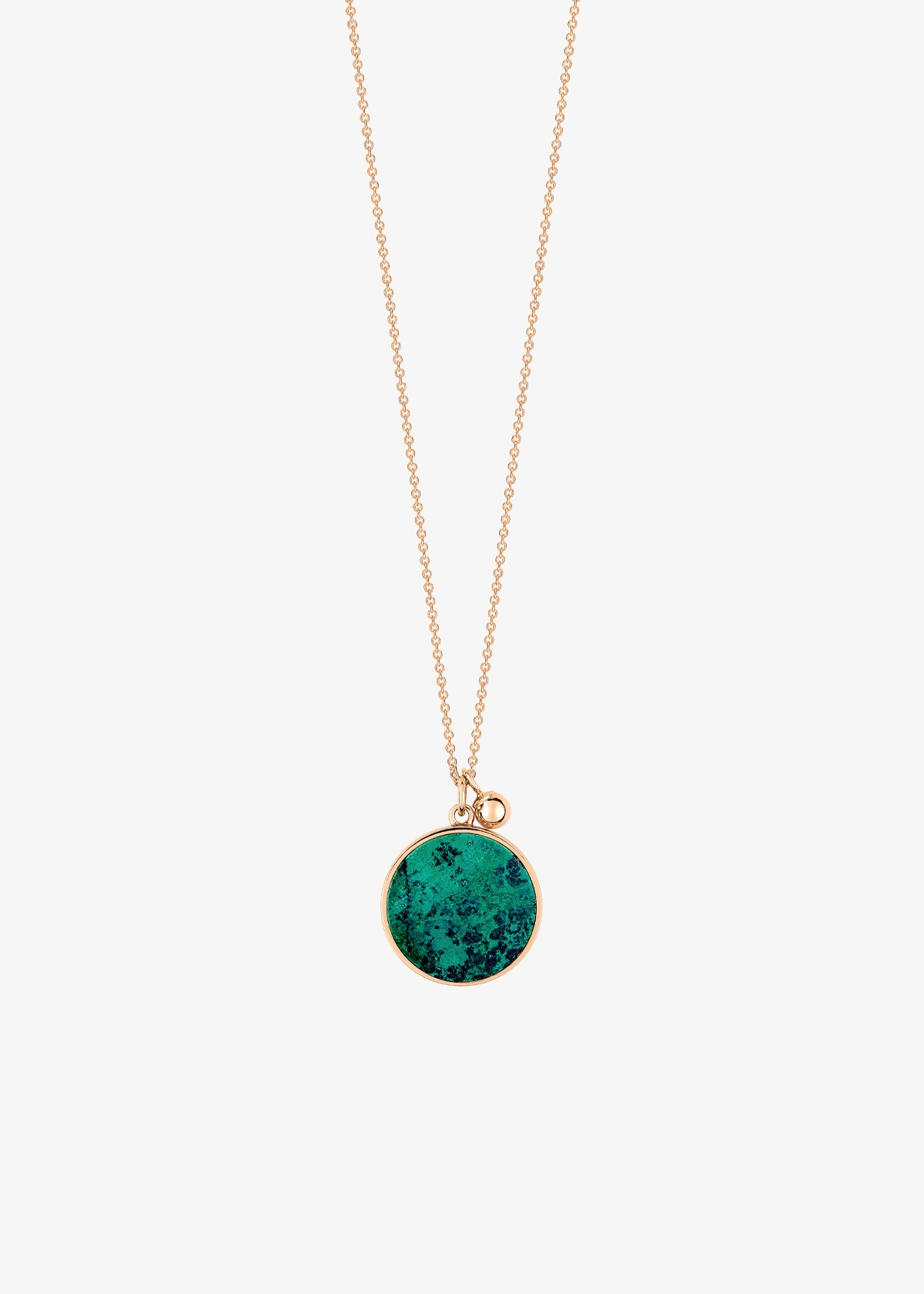 collier or rose 18 carats et chrysocolle, 43 cm taille du motif : 11 mm