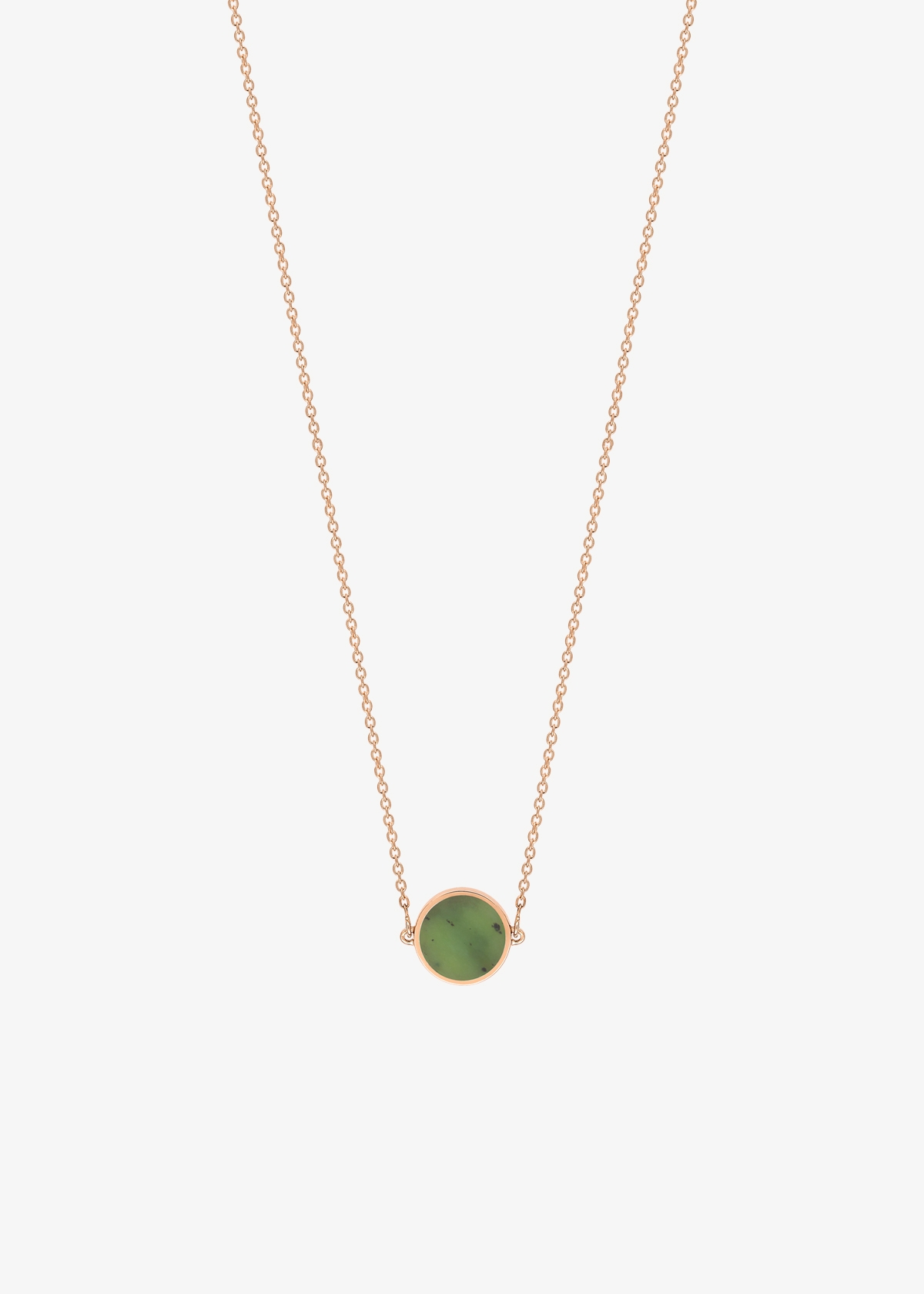 collier or rose 18 carats et jade, 43 cm taille du motif : 6 mm
