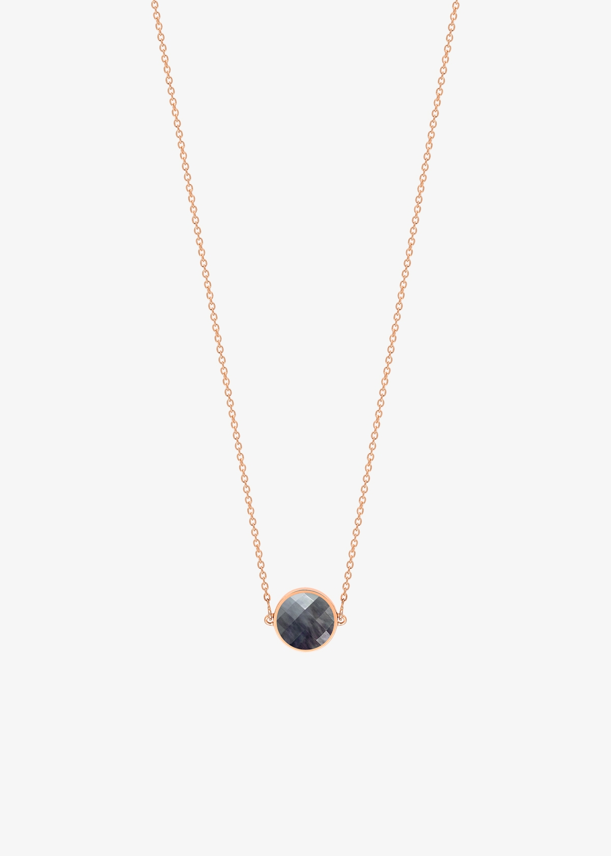 collier or rose 18 carats et nacre noire facettée, 43 cm taille du motif : 6 mm