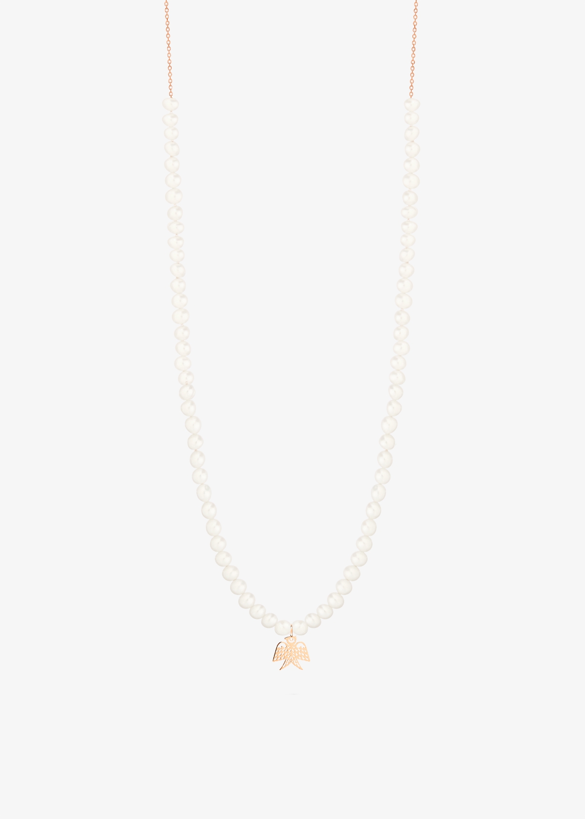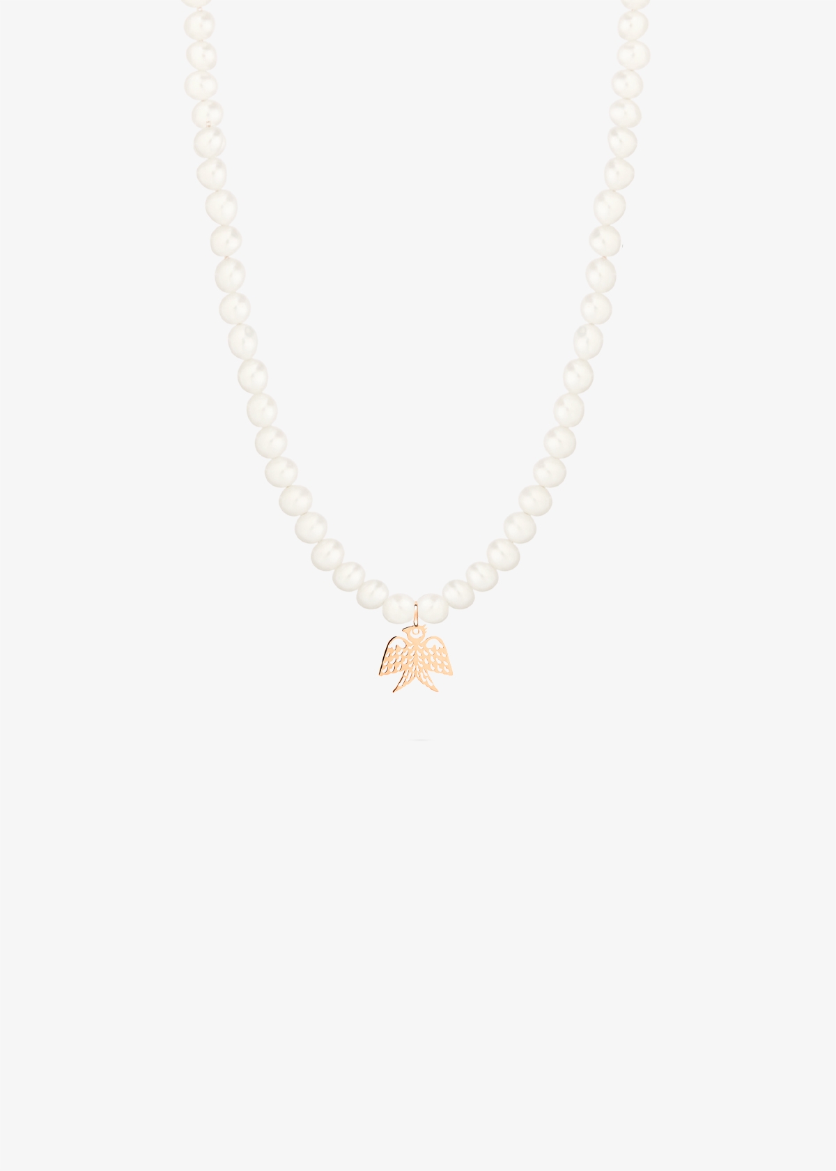 collier or rose 18 carats et perles, 43 cm taille du motif : 10 mm diamètre pierre : 4 mm