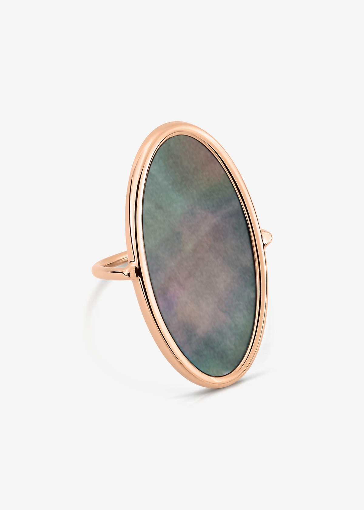 bague or rose 18 carats et nacre noire taille du motif : 16x12 mm