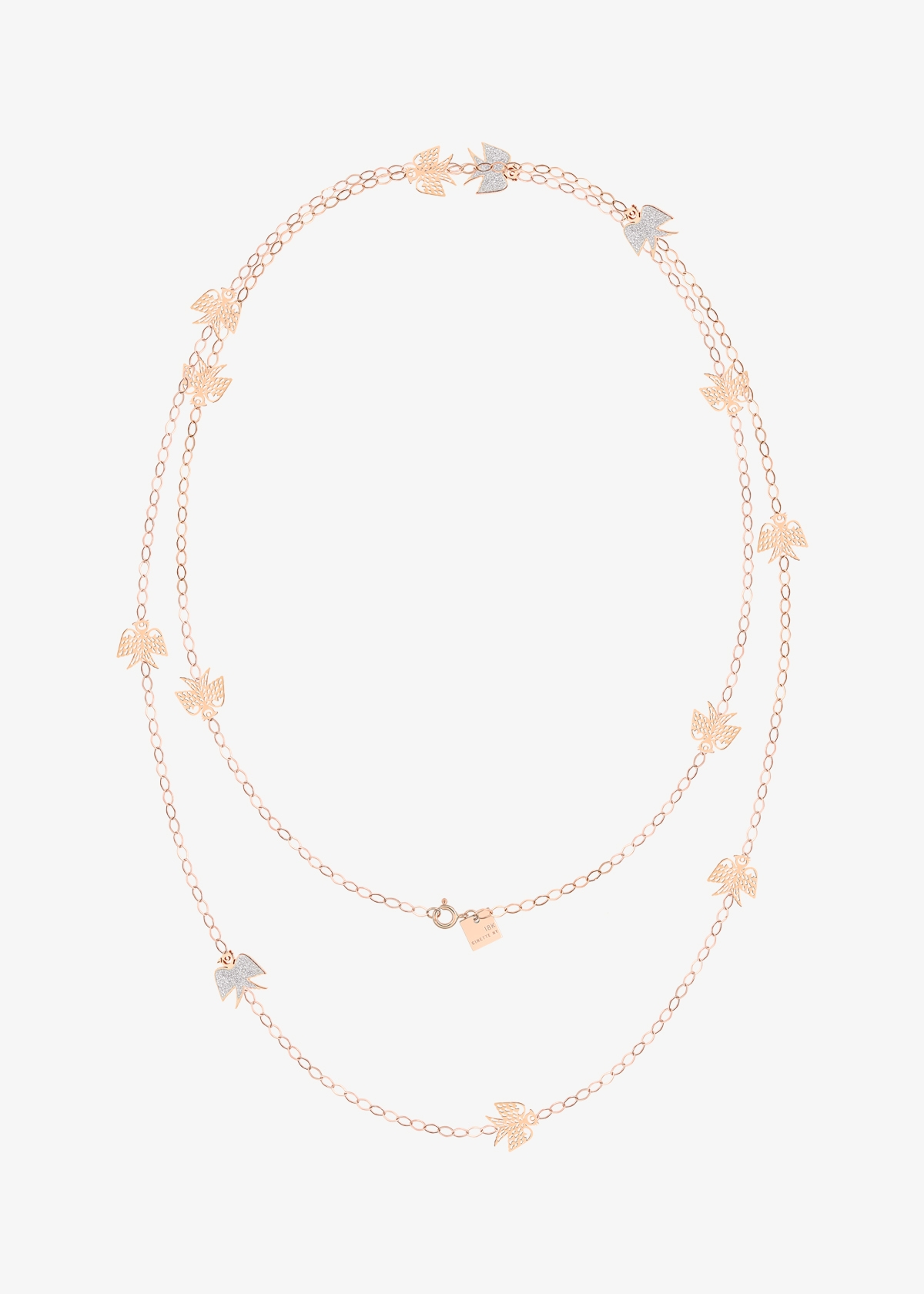 sautoir or rose 18 carats et diamants (0,21 ct), 80 cm taille des motifs : 8 mm