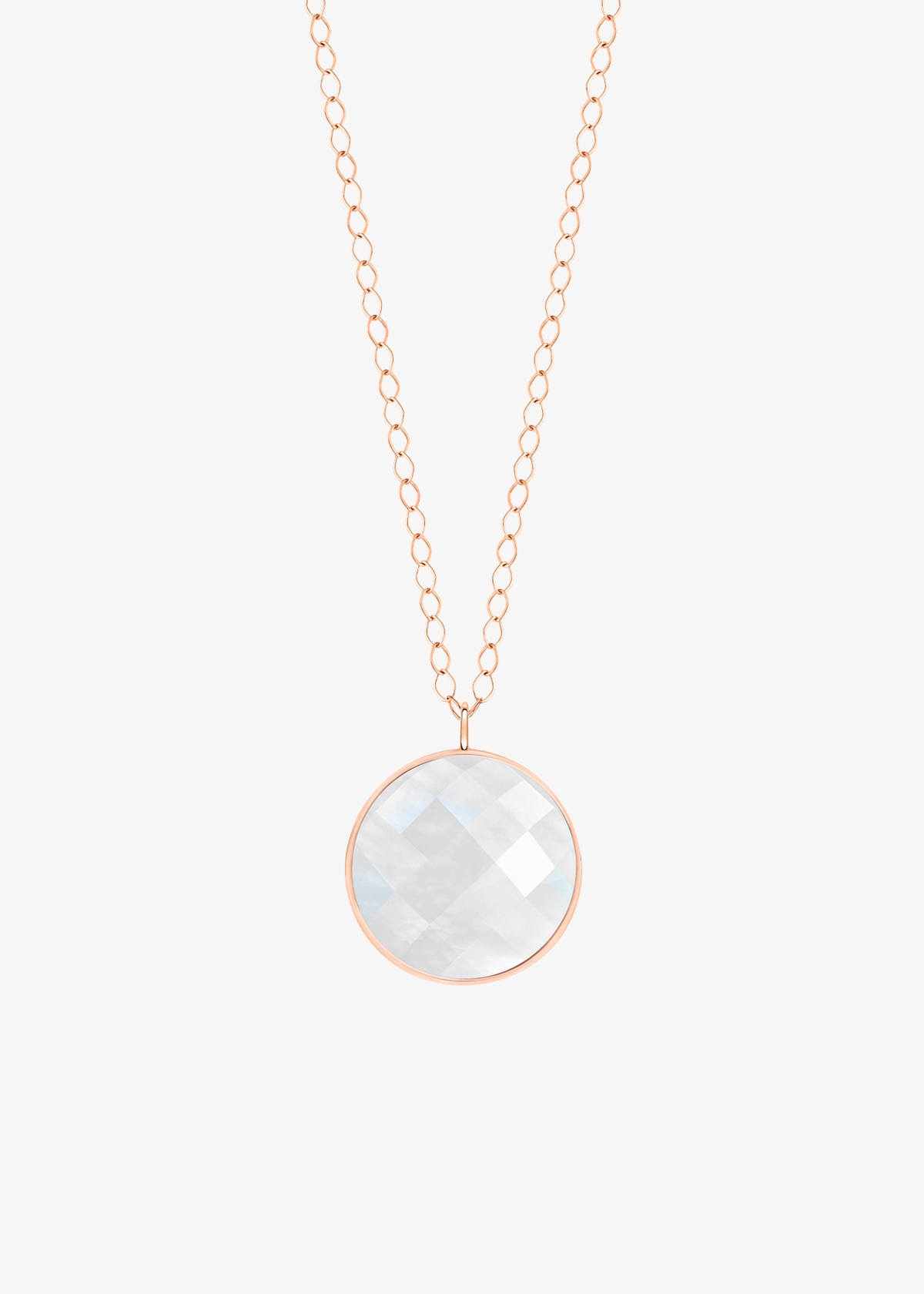 18 karat rose gold necklace and faceted white moonstone, 24"
