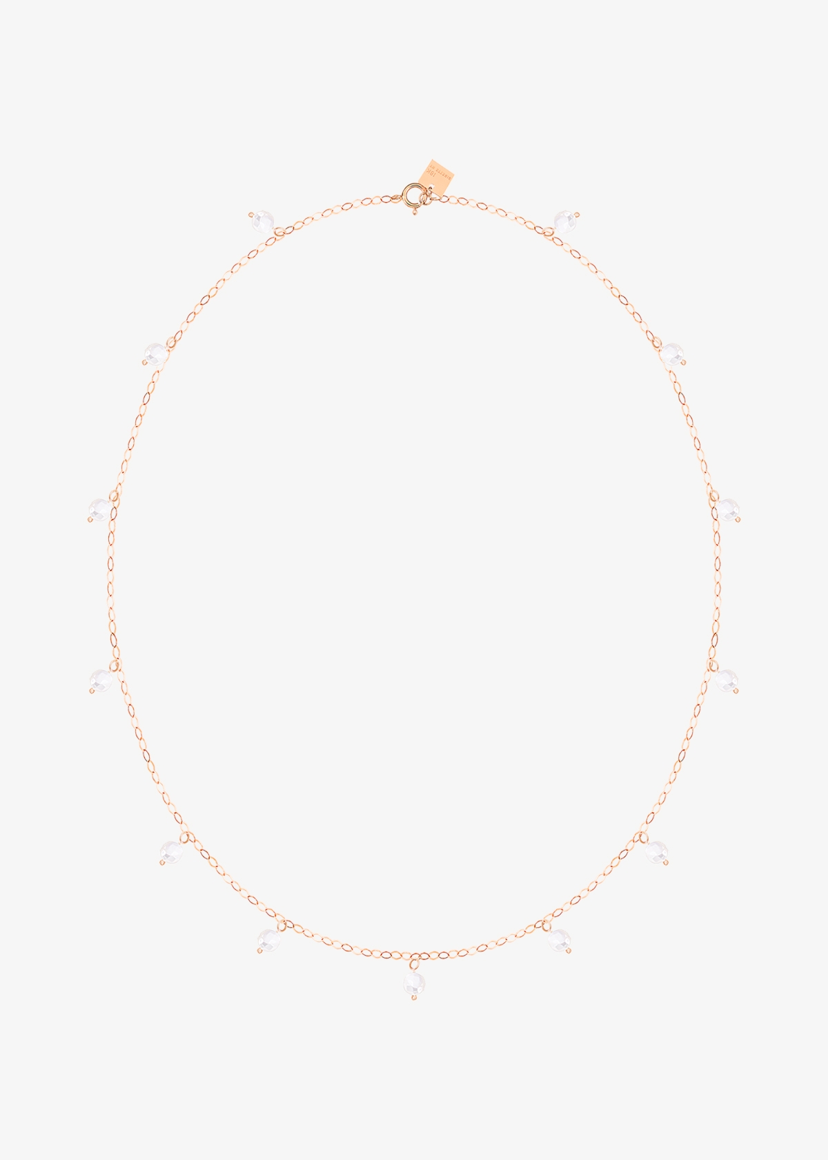 18 karat rose gold necklace and faceted white MOP, 17" stone diameter : 0,16"