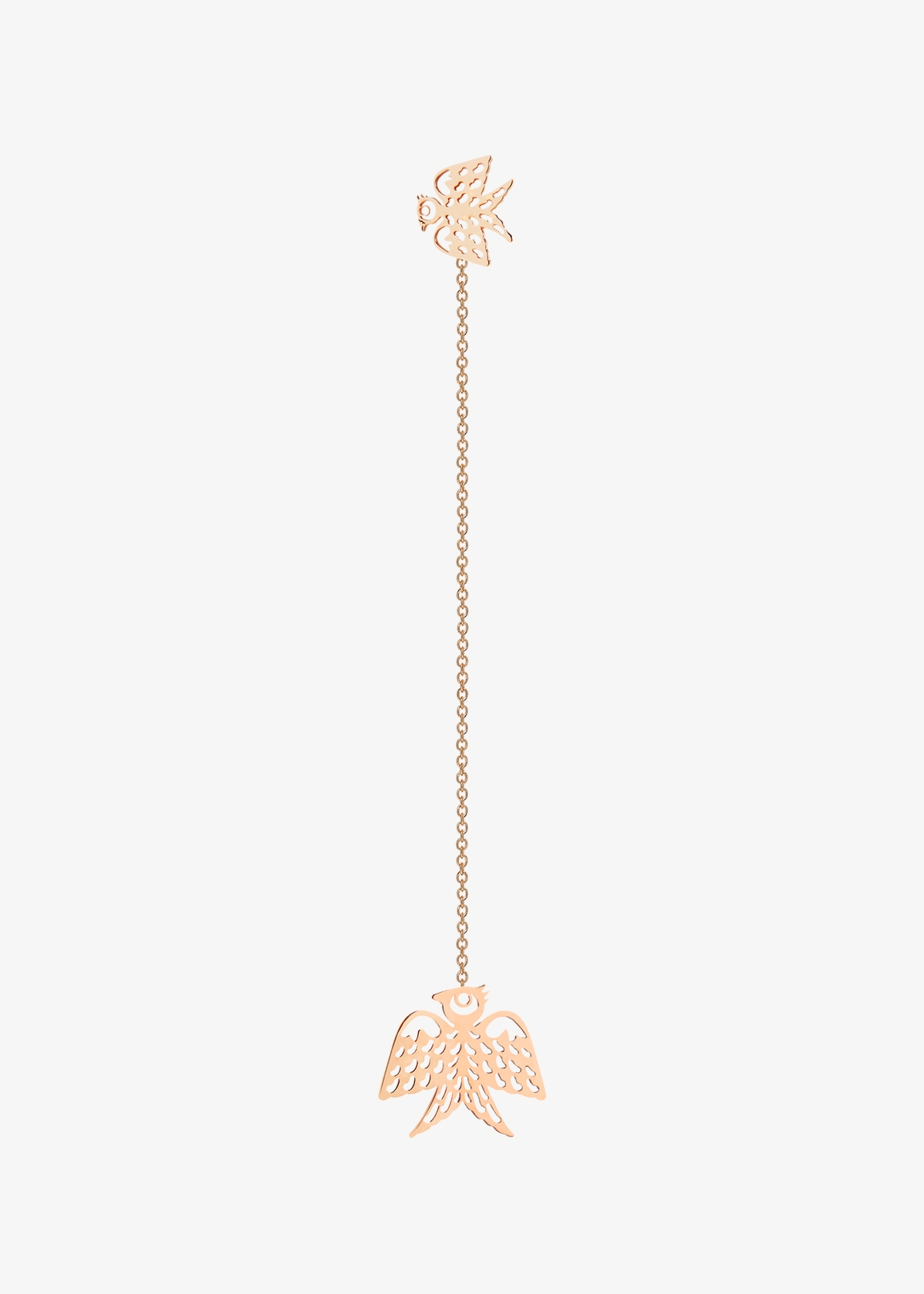 18 karat rose gold solo pendant earring motifs size : 0,31"and 0,47" chain length : 1,96"